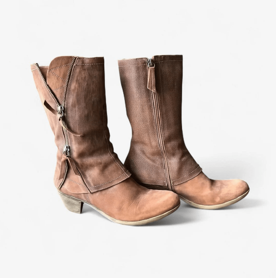 Mærk kraften i hvert skridt med Elisiv. Disse midtkalvstøvler kombinerer høj komfort med et sexet, moderne design. Med deres robuste firkantede hæl og små platforme får du både højde og stabilitet, mens det blandede farvemønster giver et unikt og iøjnefaldende look.